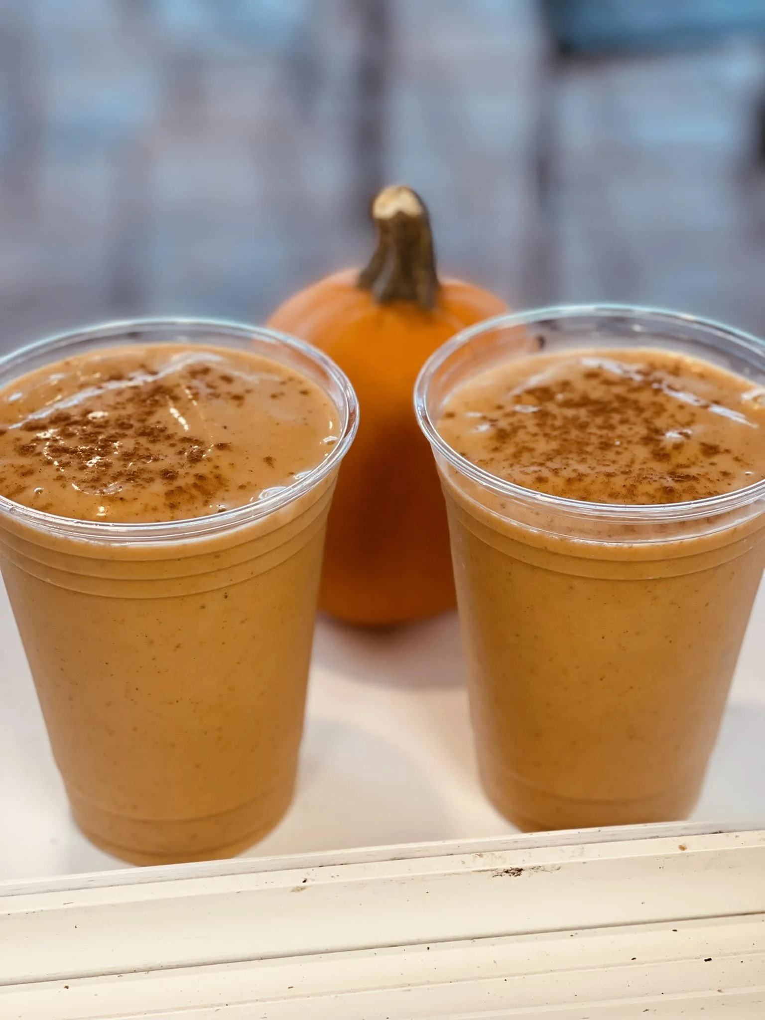 Pumpkin, banana, almond milk, peanut butter, pumpkin pie spice, cinnamon, vanilla protein
